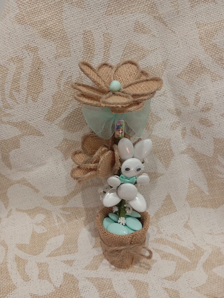 Lapin blanc en fleurs et jute